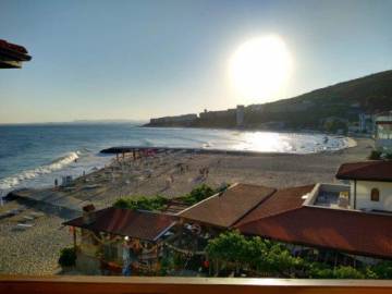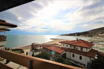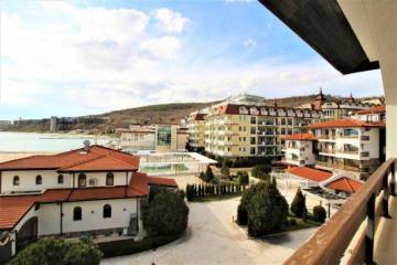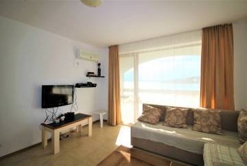 For sale a fully furnished, two-bedroom apartment with a sea view in Robinson Beach Apartments complex on the first line of the beach in Elenite Resort, the town of Sveti Vlas, Nesebar municipality