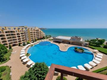 For sale a spacious, fully furnished, one-bedroom apartment with a sea view in Midia Grand Resort complex of beachfront in the town of Aheloy, Pomorie municipality
