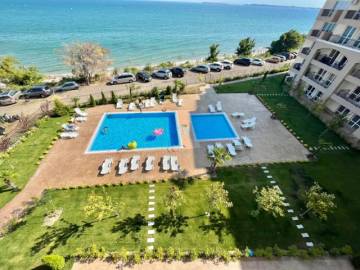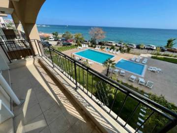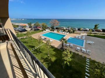 For sale a spacious, fully finished, one-bedroom apartment with a frontal sea view in the Ipanema Beach complex, on the first line of the beach in the town of Sveti Vlas, Nesebar municipality