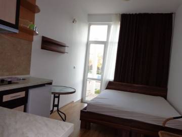 Finishing works: The studio is fully finished - laminated and terracotta tiled floors; latex painted walls and ceilings; placed PVC joinery; placed armored entrance and MDF interior doors; sanitary unit - fully finished and equipped, terracotta tiled floor, faience on the walls, sanitary ware, water heater.