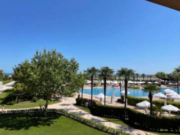 Amenities: Year-round 24/7 security, Video surveillance, Restricted access, Elevators, Two large pools (1500 sq.m each; relaxation pool and pool for active sports, animation and entertainment), Children's pool, Sunbeds and umbrellas, Reception, Lobby bar, Three restaurants, Five unique bars (salon bar, bar terrace, lobby bar, pool bar, night bar and disco), SPA center (sauna, Turkish bath, solarium, massage salon, Asian treatments and rituals, Ayurveda, exotic SPA rituals, anti-cellulite treatments, baths and body wraps, Thalgo facial treatments), Sports facility (two tennis courts, football and basketball courts), Beach volleyball court, Professional fitness center, Mini golf, Multipurpose children's playgrounds, Children's area with professionally trained animators, Two kindergartens, Games room (table tennis, snooker and pool table, table football, darts, chess and backgammon), Minimarket, Medical center, Business center, Conference center with four conference rooms, Beauty salon, Laundry, Dry cleaning, Room service, Parking, Well-maintained and beautifully landscaped park territory with over 300 exotic palm trees covering 35000 sq.m, Year-round technical support.
