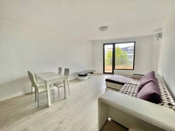 Finishing works: The apartment is fully finished - laminated floors; latex painted walls and ceilings; placed PVC joinery; placed entrance and MDF interior doors; sanitary unit - terracotta tiled floor, faience on the walls, sanitary ware, shower cabin, washing machine, water heater; installed Air conditioning in both rooms.