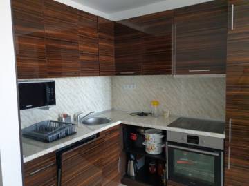Finishing works: The apartment is fully finished - laminated floors; latex painted walls and ceilings; placed PVC joinery; placed entrance and MDF interior doors; sanitary units - terracotta tiled floor, faience on the walls, sanitary ware, bathtub, shower cabin, washing machine, water heaters; installed Air conditioning in both living rooms.