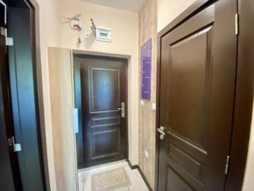 Finishing works: In the process of the construction of the building is done by using only high quality materials, namely: reinforced concrete structure and bricks; mineral plaster, hydro- and thermal insulation with a thickness of 7 cm; sound-proof hydraulic elevators; luxurious common parts and furniture in interior design project; corridors and staircases; common areas - latex painted walls and ceilings, fine stoneware tiles on the floors. The apartment is fully finished - terracotta tiled and laminated floors; wallpaper, plastered and latex painted walls; plastered and latex painted ceilings; placed PVC joinery with double glazing; placed armored entrance and MDF internal doors; shower room with toilet - fully finished and equipped, terracotta tiled floor, faience on the walls, sanitary ware, shower cabin, washing machine, water heater; outlets for telephone, cable TV, internet; installed Air conditioning in both rooms.