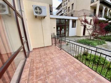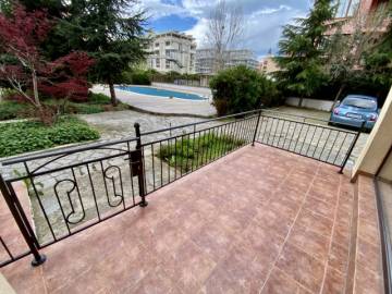 We offer for sale a fully furnished, one-bedroom apartment with a total built-up area of 45,72 sq.m and a built-up area of 40,89 sq.m, which is situated on the ground floor of a five-storey residential building. The apartment has its own fenced veranda in front of the apartment with direct access to the territory of the complex and with pool view. The apartment has separate accounts for electricity and water.