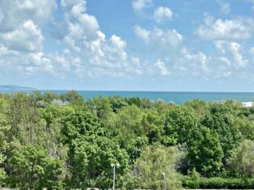 For sale a spacious, fully furnished, two-bedroom apartment with sea view in a gated complex about 400 meters away from the beach in the Sunny Beach Resort, Nesebar municipality