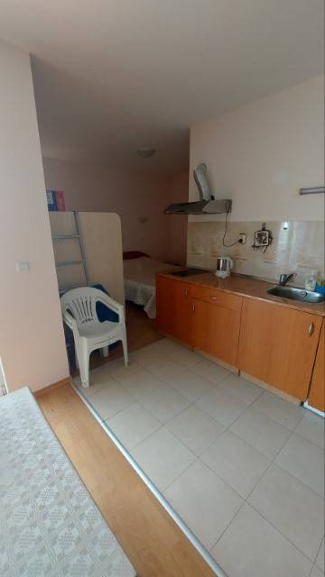 Finishing works: The studio is fully finished - terracotta tiled and laminated floors; latex painted walls and ceilings; placed PVC joinery; placed entrance and MDF interior doors; sanitary unit - fully finished and equipped, terracotta tiled floor, faience on the walls, sanitary ware, shower cabin, water heater; installed Air conditioning in the living room.