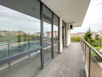 Finishing works: The apartment is fully finished - laminated floors; latex painted walls and ceilings; placed PVC joinery; placed armored entrance and MDF interior doors; sanitary unit - terracotta tiled floor, faience on the walls; installed Air conditioning in the living room.