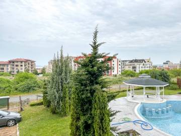 For sale a spacious, fully finished, one-bedroom apartment in a gated complex, about 500 meters away from the beach in the town of Sveti Vlas, Nesebar municipality