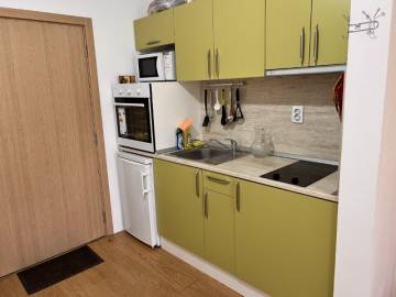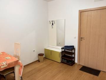 Finishing works: The apartment is fully finished - laminated floors; latex painted walls and ceilings; placed PVC joinery; placed entrance and MDF interior doors; sanitary unit - fully finished and equipped, terracotta tiled floor, faience on the walls, sanitary ware, shower cabin, water heater; installed Air conditioning in the living room.
