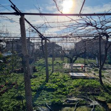 Yard: The plot of land has an area of 627 sq.m, flat, partially surrounded by a solid fence. There is a garage with a built-up area of 19 sq.m and a well in the yard. In the yard are planted fruit trees, vineyards, flowers, shrubs, landscaping.