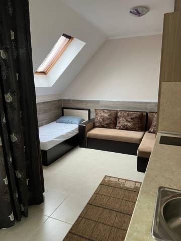 Finishing works: The studio is fully finished - terracotta tiled and laminated floors; latex painted walls and ceilings; placed PVC joinery; placed MDF entrance and interior doors; sanitary unit - fully finished and equipped, terracotta tiled floor, faience on the walls, sanitary ware, shower cabin, water heater; installed Air conditioning.