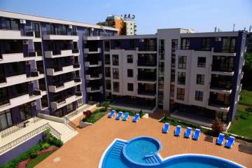 The complex is located 17 km north from Varna, just 300 m alay from the beach, in the heart of Golden Sands by the biggest water park of the region. The location is unique because of its natural combinations green mountain slopes and beautiful golden beaches that have given the holiday resort its name.